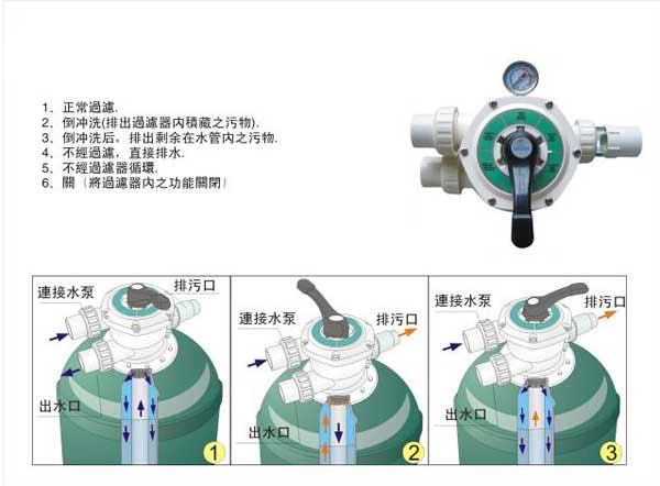 濾料層在過濾池水的過程中,會隨著時間的延續,導致污染物質不斷積累在濾料層上,造成過濾效果降低,水質惡化,這時就需要對過濾器進行反沖洗。一般有三種反沖洗方法:“高速水流沖洗”、“氣、水組合沖洗、“帶有表面沖洗的高速水流沖洗”。